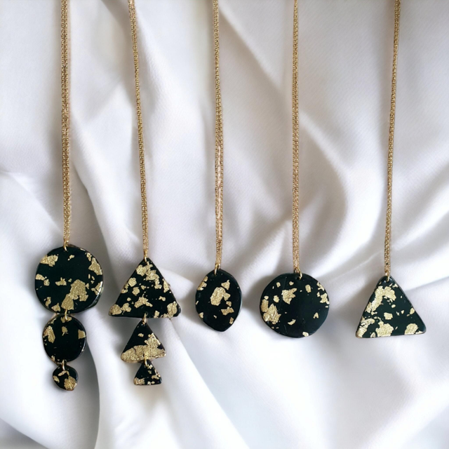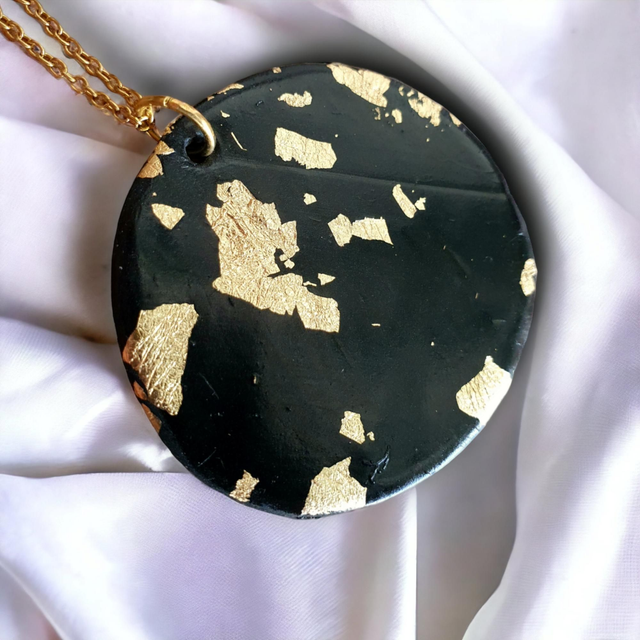 ☆ Collier composé d'un rond en pâte fimo noir 🖤 et dorure ✨️