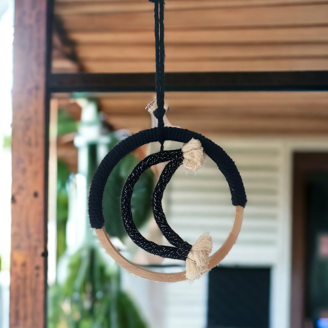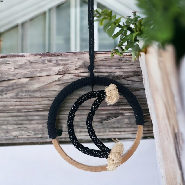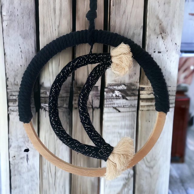 ☆ Lune en macramé noir⚫️ et son cercle en bois