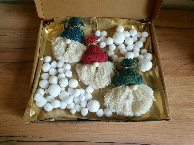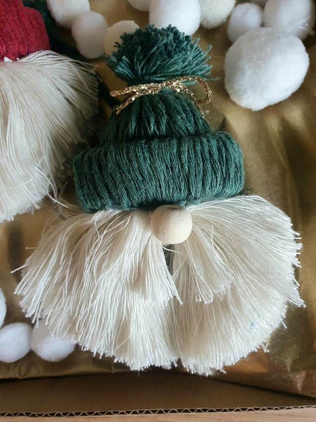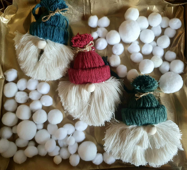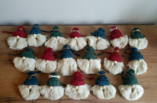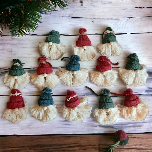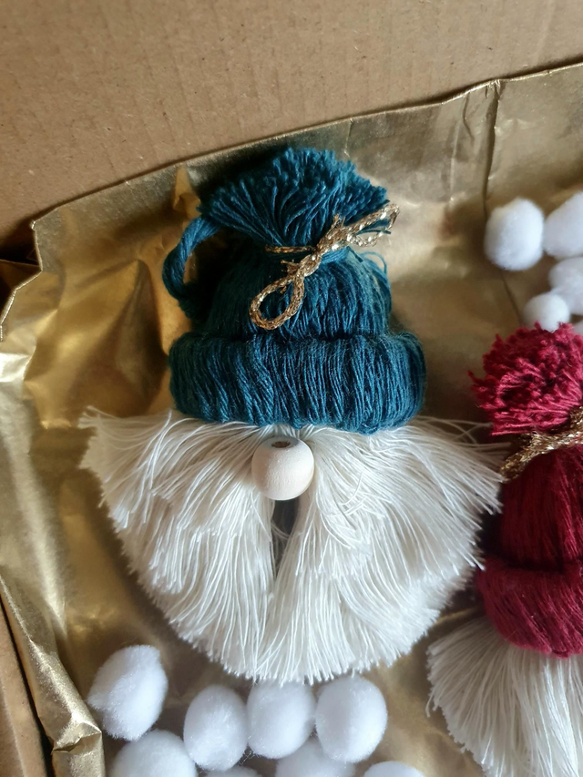 ☆Suspension de Pères Noël en macramé rouge, bleu et vert